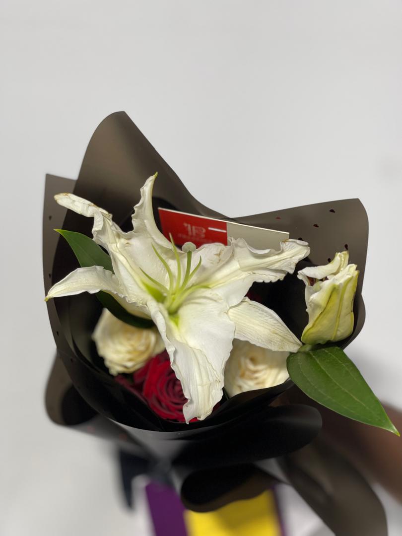 Entry – 5 Roses and 1 Lily, Xsmall – 10 Roses and 1 Lily, Small – 15 Roses and 2 Lily, Moyenne – 20 Roses and 2 Lilies, Standard – 25 Roses and 3 Lilies, Deluxe – 30 Roses and 3 Lilies, Deluxe Plus – 40 Roses and 4 Lilies, Deluxe Premuim – 50 Roses and 4 Lilies, First Class – 60 Roses and 5 Liies
