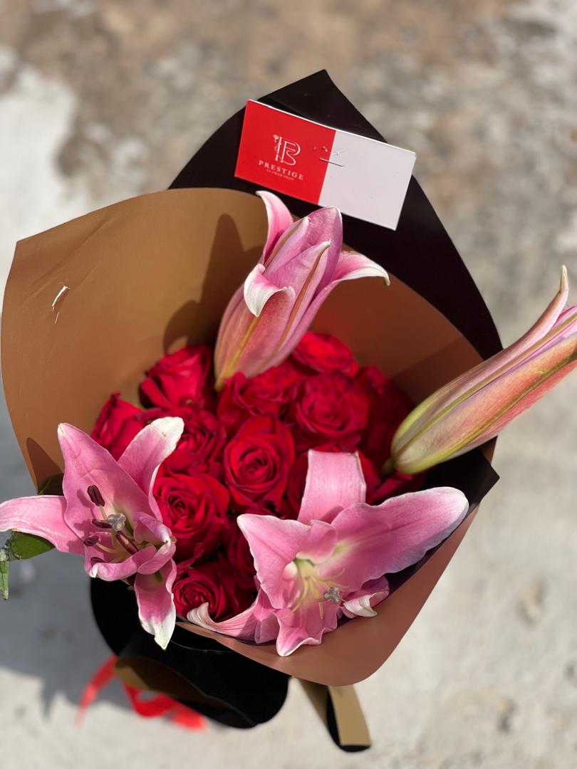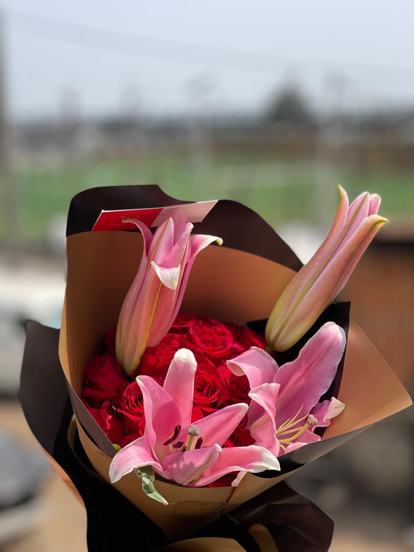 Aurora – Roses and Lilies Bouquet | Order Flowers & Gifts Online Now!